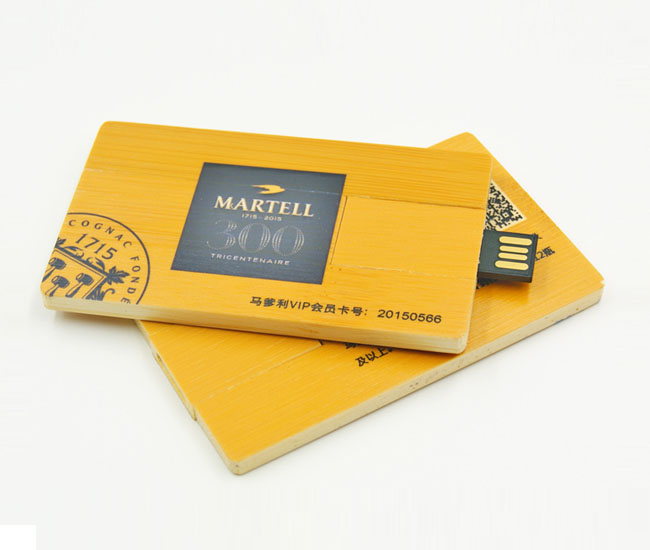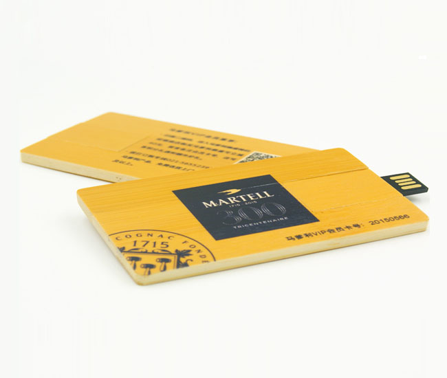 木頭卡片U盤的外殼采用高檔木質(zhì)材料制成,以會(huì)員卡的造型為主題設(shè)計(jì),U盤整體形狀為長方形,U盤的幾個(gè)邊角都切成了圓角,不僅圓潤還不傷手,還滿足了人們視覺上的美感,卡片的正反兩個(gè)木頭表面都涂上了黃色的油漆,U盤的正面還加上了黑色的logo,非常的醒目,具有很好的廣告宣傳作用。同時(shí)卡片U盤的印刷面積大,便于攜帶的特點(diǎn),是定制率高的的U盤款式,深受定制禮品U盤客戶的喜愛,另外,U盤的芯片部分采用的是質(zhì)地輕且薄的的黑膠體質(zhì)地輕且薄。