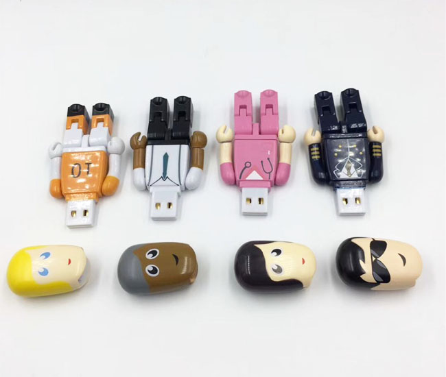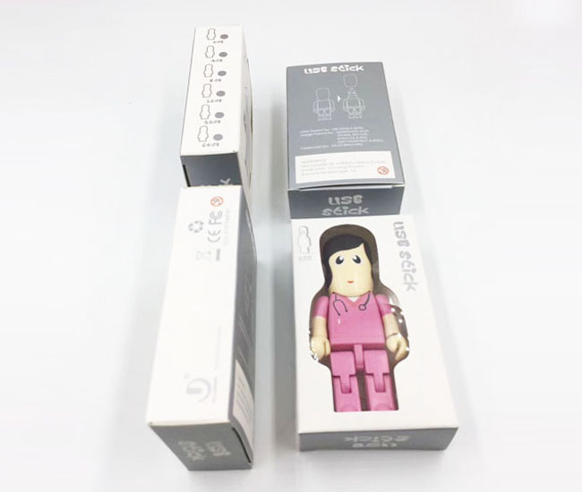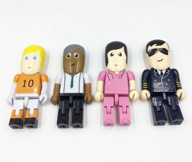 這個(gè)系列塑膠U盤(pán)款式共有11個(gè)圖案,是大尺寸款式,整體尺寸有84*38*16mm,11個(gè)現(xiàn)成圖案分別代表著:醫(yī)生U盤(pán),護(hù)士U盤(pán),警察U盤(pán),老師U盤(pán),工人U盤(pán),工程師U盤(pán),其中以天藍(lán)色款的醫(yī)生U盤(pán)是客戶選擇最多的,上圖展示的是優(yōu)盤(pán)的正面,背面全部是中性的,如果要定制logo的話,可以定制在背面,也可以定制在正面胸部的空白位置,定制方式為彩印。