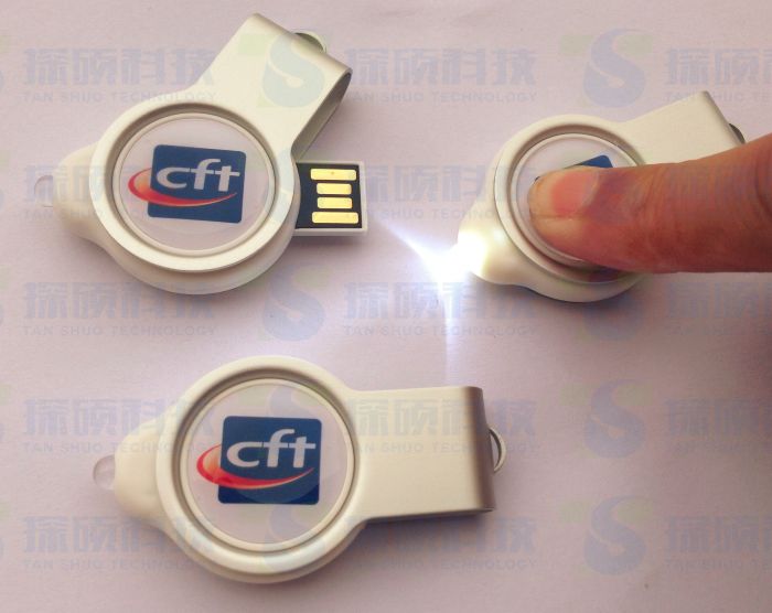 這款旋轉滴膠U盤是美國CFT公司定制展會禮品U盤,360度旋轉功能 有手電燈功能,表面滴膠雙面LOGO,是展會禮品最佳選擇。