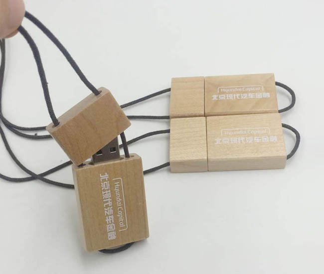 時(shí)尚環(huán)保帶掛繩木頭U盤